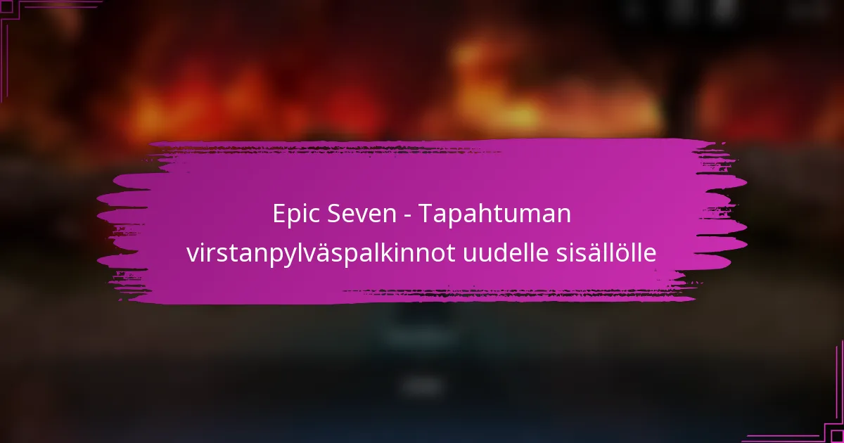 Viimeisin tapahtuma Epic Sevenissä tuo mukanaan useita uusia hahmoja ja pelimekaniikkoja, jotka parantavat merkittävästi pelielämystä. Pelaajat voivat odottaa tuoreita strategioita ja yhteisön osallistumista, kun nämä päivitykset etenevät.